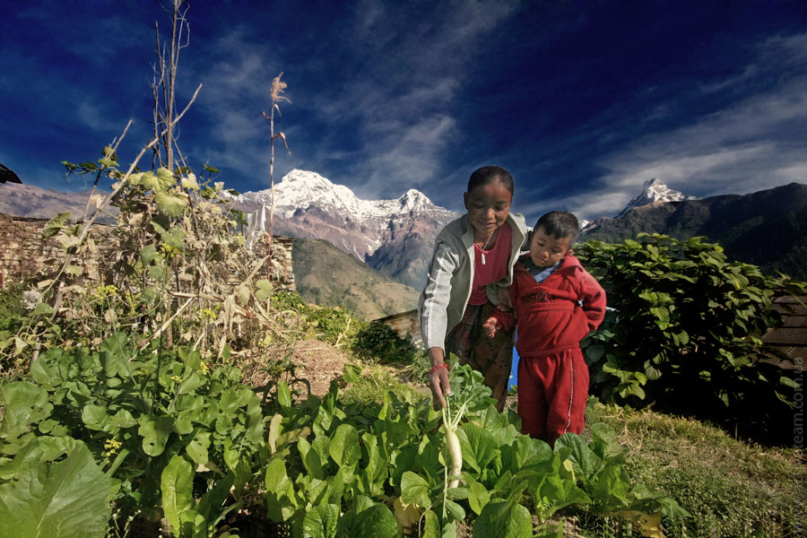 и заботливо ласкает честный трудолюбивый непальский народ.